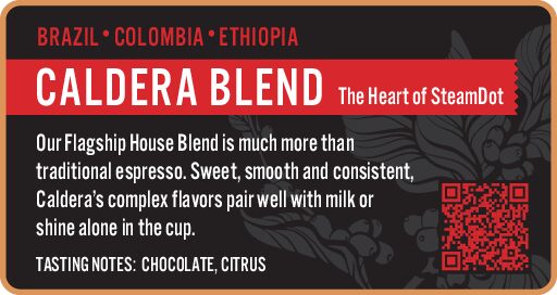 Our Flagship House Blend is much more than traditional espresso. As espresso, Caldera presents flavors of citrus and chocolate and pairs well with milk. When brewed as drip, Caldera displays a more chocolate-forward cup with fruit undertones.